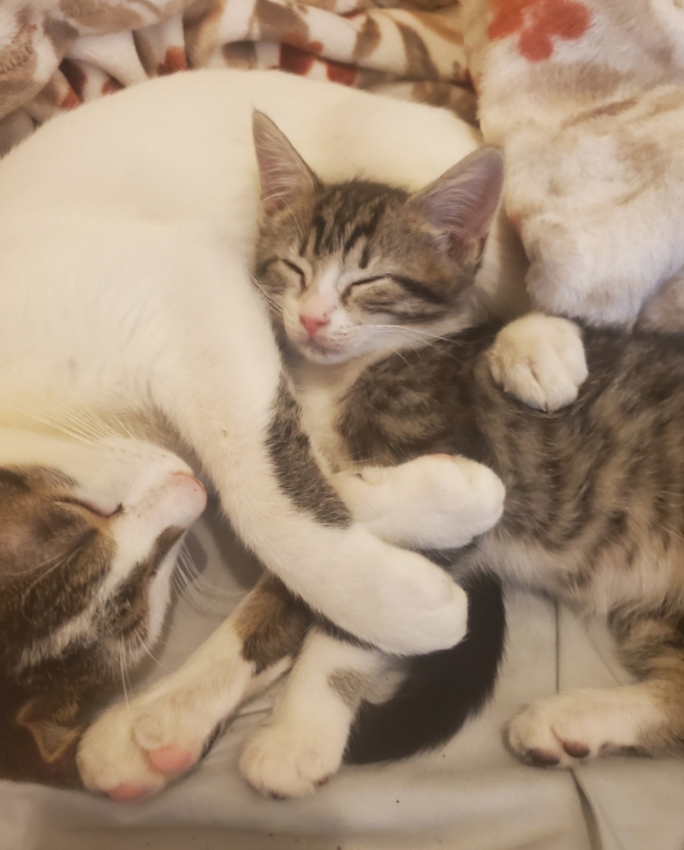 Our rescue babies growing up fast. Miss Oakley is now 10 weeks and loves cuddle time with big brother Moose.