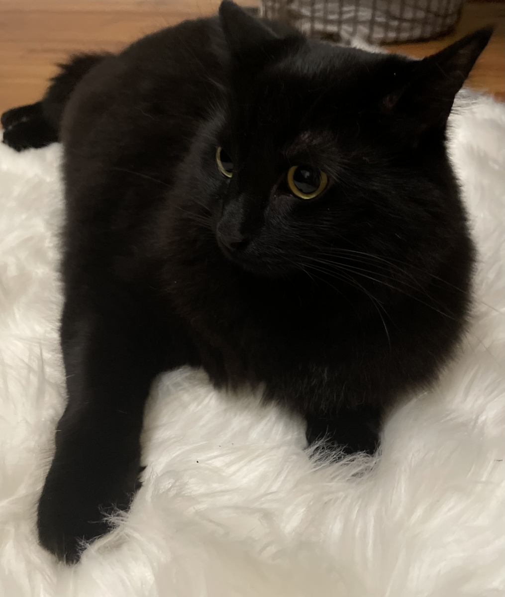 Her highness on the fur rug!