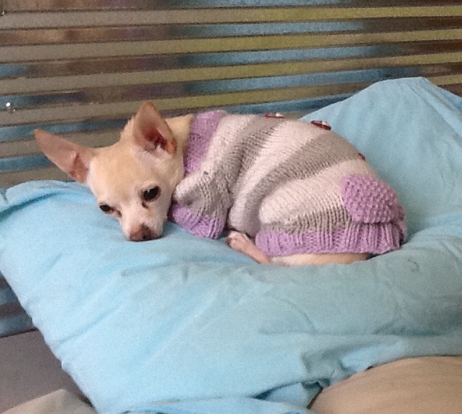 Pinky models her sweater