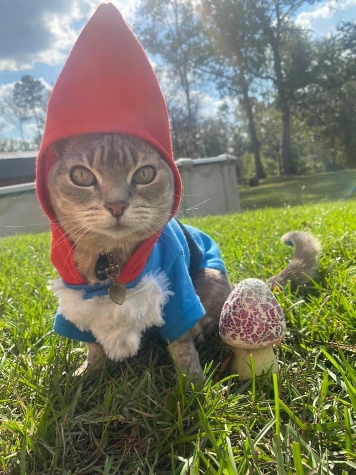 Anya is a Grey Tabby cat who lives a double life as a gnome. She enjoys mushrooms, fairies, and gardens.